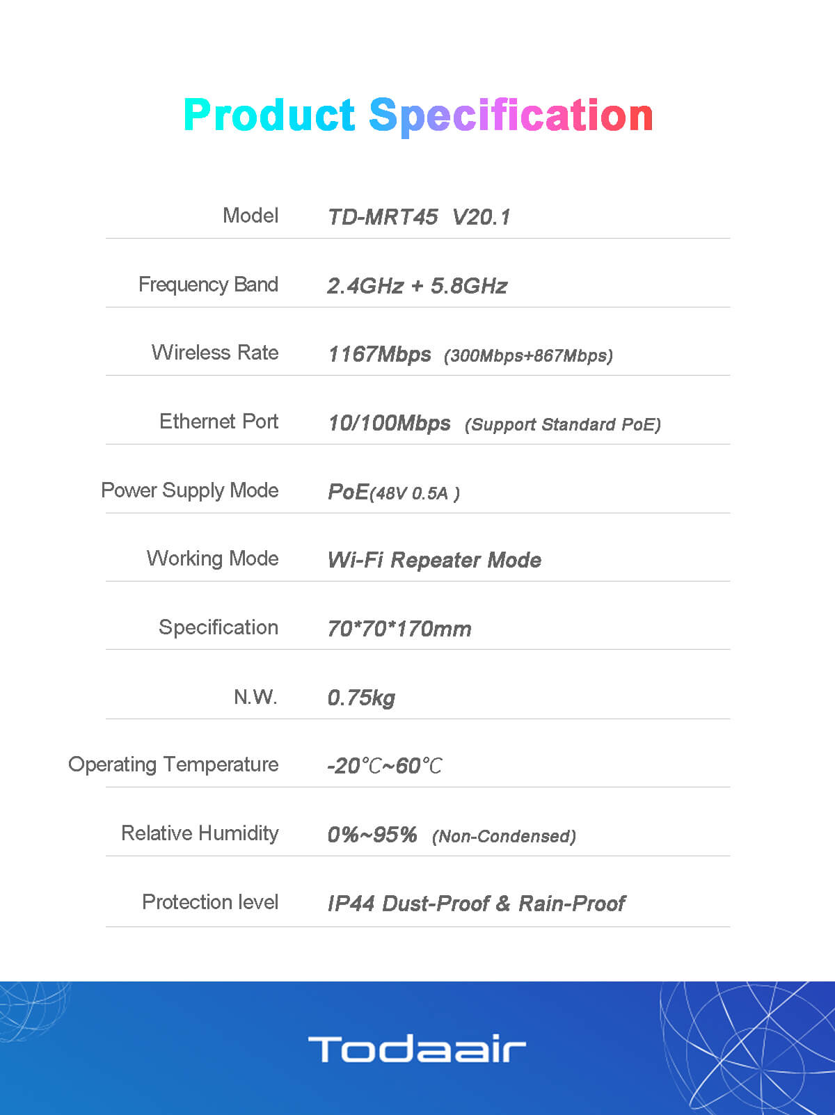 TD-MRT45 V20.1 Dual band 1200M Mesh Router